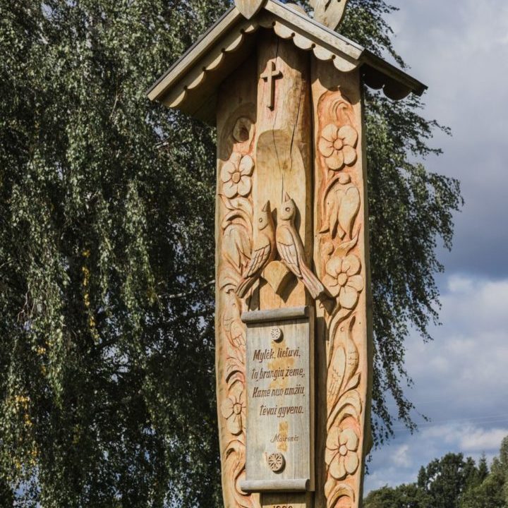 Pasandravis homestead and Bernotai homestead and their surroundings are sculptured by unique crosses and pillar-type chapels designed by Lithuanian folkmen and presented to Maironis birthplace.