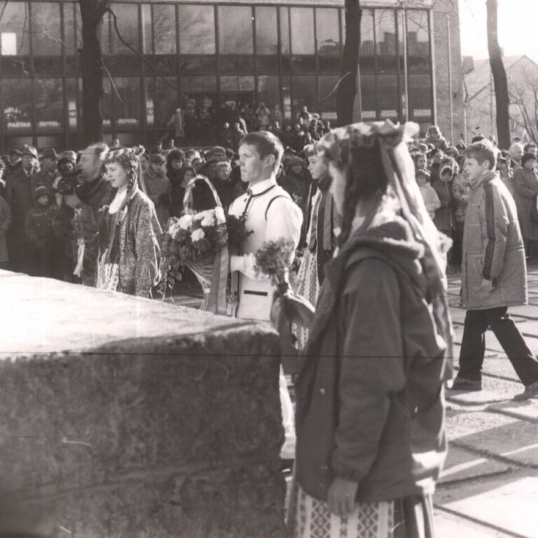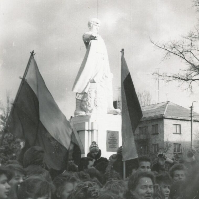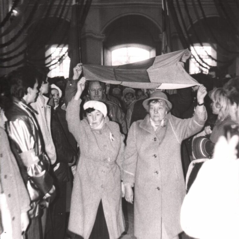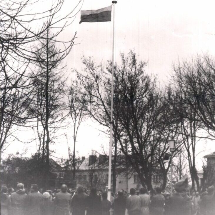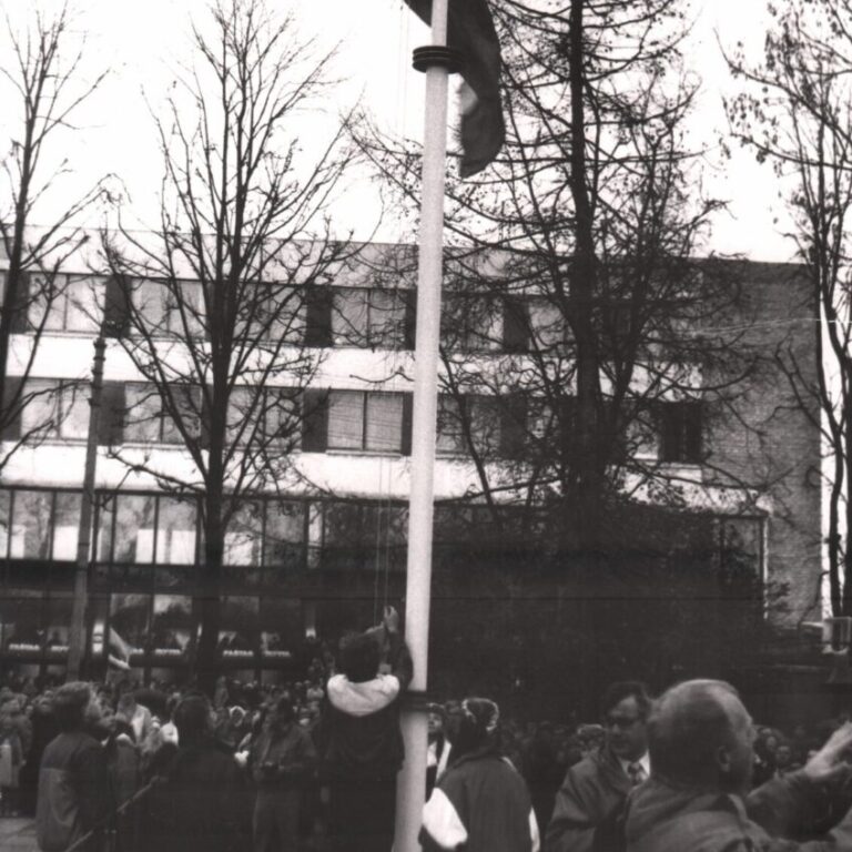 1988 metų spalio 7 dieną Gedimino pilies bokšte iškelta trispalvė vėliava. Su baime, jauduliu lietuviai trispalves laikė pirmųjų sąjūdžio mitingų metu. Buvo vėliavų, išsaugotų per visą sovietinę okupaciją, rizikuojant atsidurti sovietinio saugumo rūsiuose, net Sibiro lageriuose. Spalio 29-ąją vėliava, pašventinta Raseinių bažnyčioje, savo spalvas išskleidė Raseiniuose, Žemaičio aikštėje. Visa aikštė nušvitusi trispalvėm, o širdyse ir lūpose skambėjo: „Mylėk, lietuvi, tą brangią žemę, kurioj nuo amžių tėvai gyveno”. Po mėnesio vėliava perduota saugoti Raseinių krašto istorijos muziejui. Nepriklausomybės atkūrimo 10-mečio proga 2000 kovo 11 dieną ši vėliava vėl plevėsavo Žemaičio aikštėje.