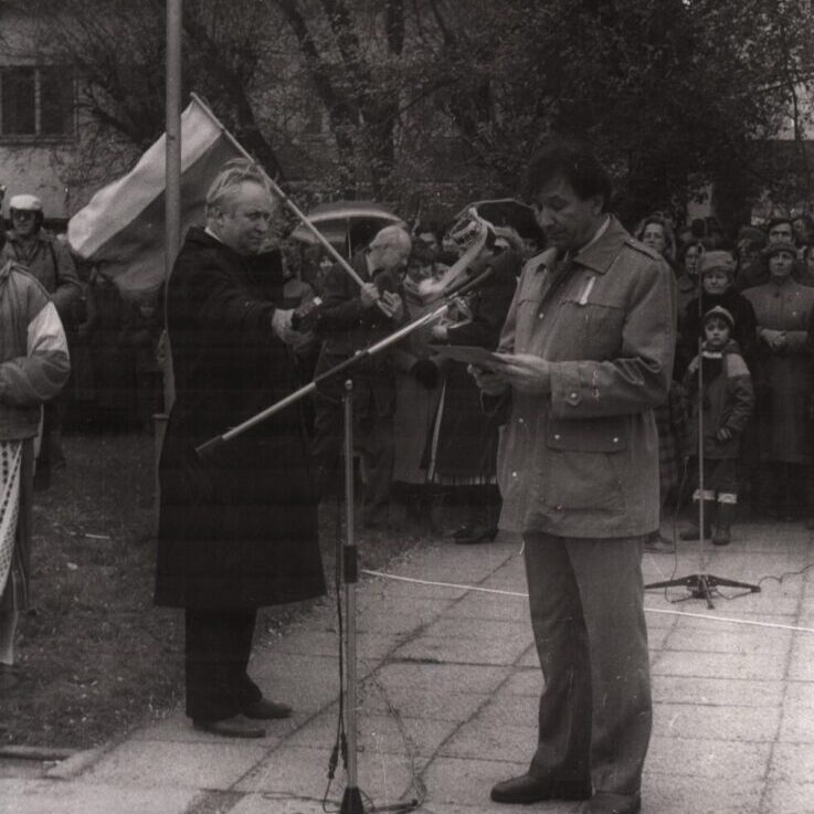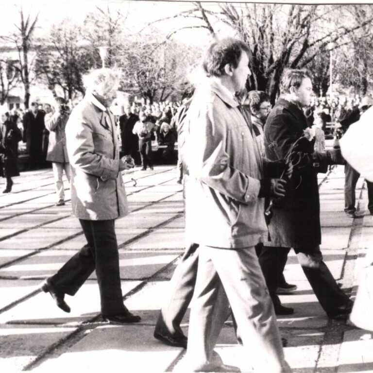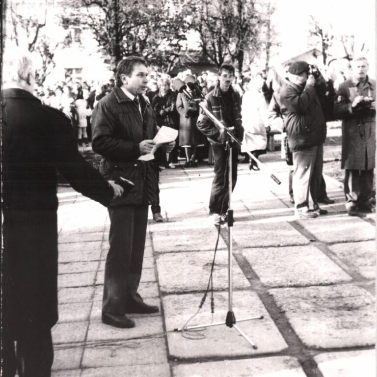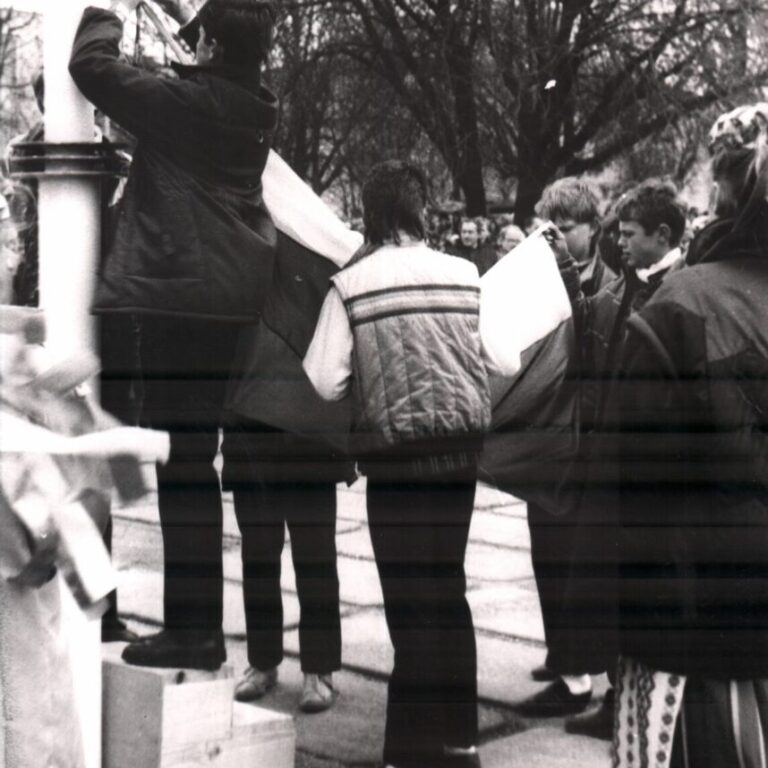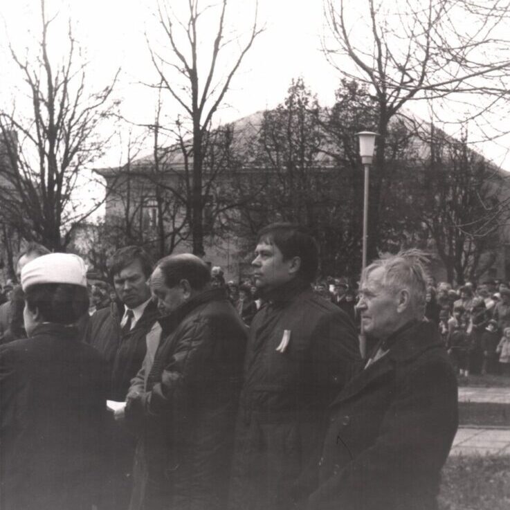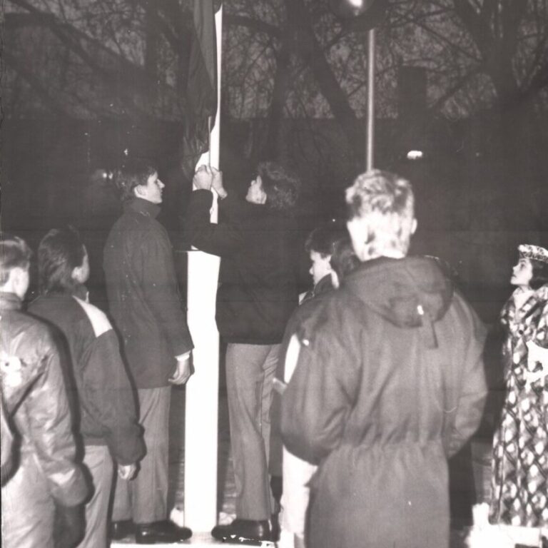 1988 metų spalio 7 dieną Gedimino pilies bokšte iškelta trispalvė vėliava. Su baime, jauduliu lietuviai trispalves laikė pirmųjų sąjūdžio mitingų metu. Buvo vėliavų, išsaugotų per visą sovietinę okupaciją, rizikuojant atsidurti sovietinio saugumo rūsiuose, net Sibiro lageriuose. Spalio 29-ąją vėliava, pašventinta Raseinių bažnyčioje, savo spalvas išskleidė Raseiniuose, Žemaičio aikštėje. Visa aikštė nušvitusi trispalvėm, o širdyse ir lūpose skambėjo: „Mylėk, lietuvi, tą brangią žemę, kurioj nuo amžių tėvai gyveno”. Po mėnesio vėliava perduota saugoti Raseinių krašto istorijos muziejui. Nepriklausomybės atkūrimo 10-mečio proga 2000 kovo 11 dieną ši vėliava vėl plevėsavo Žemaičio aikštėje.