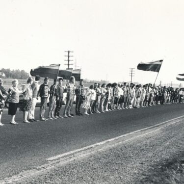Tautinės vėliavos pakėlimo šventė "Žemaičio" aikštėje Raseiniuose 1988 spalio 29 d.