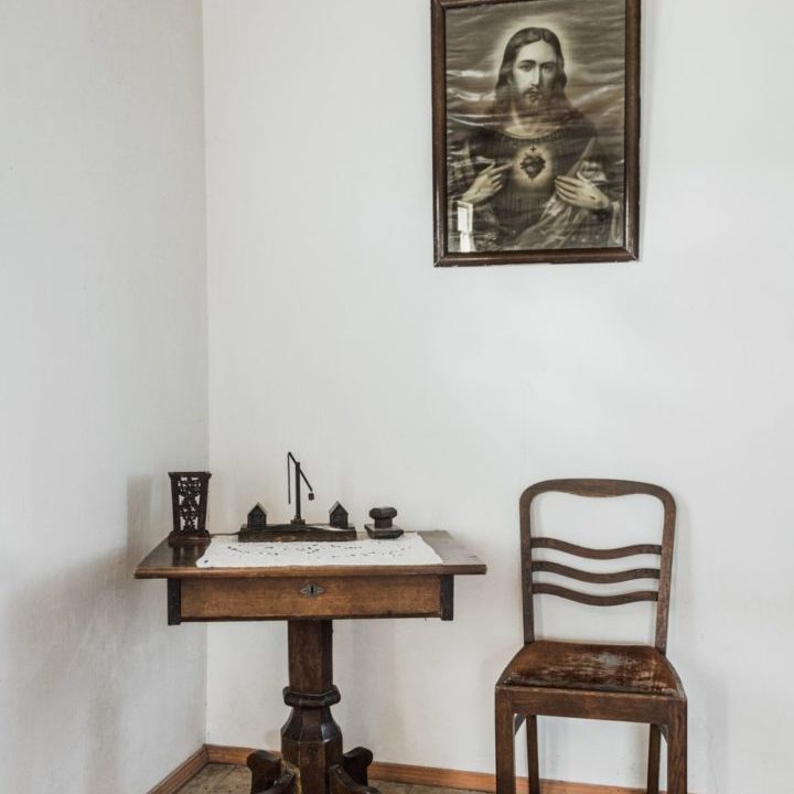 Poeto Maironio sesers Kotrynos šeimos gyvenamasis namas Marijos Maloningosios globoje. Sudegus senajai Mačiulių sodybai Lipčiai parsivežė iš Didžkaimio seną namą, Bernotuos jį naujai surentė, kad turėtų kur gyventi. Gerąjame gale duris, tradiciškai šviesiausioje patalpos vietoje stovi ilgas stalas, staliaus darbo kėdės, virš jų ant sienos Paties Jono Mačiulio bei jo tėvų portretai. Netoli „gerojo kampo“ prie „šliobankės“ stovi stačiakampis stalelis, prie kurio, parvažiavęs į Bernotus, Maironis sėdėdavo ir rašydavo, bei jo paties iš medžio pasidirbdinta rašalinė. Greta lovos, kuriose įprastai miegodavo tėvai. Šeimynos gale vykdavo įprastas kasdienis gyvenimas…