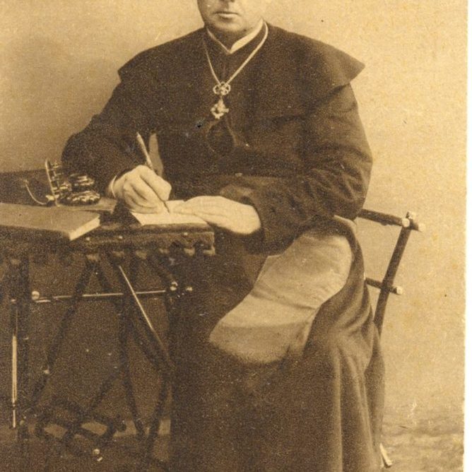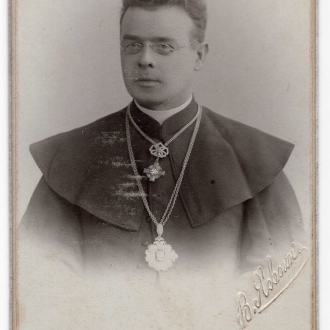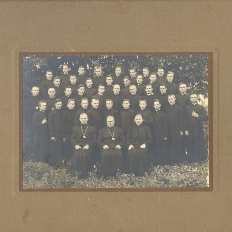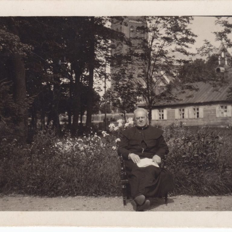 Jonas Mačiulis (Maciulevičius in documents), was born in 1862, in Pasandravis manor house, and grew up in Bernotai village (Šiluva county, Raseiniai District). His parents were free peasants and had close relationships with the Polonised gentry. The foundations of education J.Mačiulis received from his father and in Betygala School that he attended for six months. In 1873 J.Mačiulis entered the preparatory class of Kaunas Gymnasium. In the sixth form, he started writing poetry in Polish. In 1883, having graduated from the gymnasium, he entered Kyiv University to study literature. Respecting the wish of his parents, in 1884 he entered Kaunas Theology Seminary. After graduating from the seminary, he continued his education at Imperial Roman Catholic Spiritual Academy in St. Petersburg from 1888 to 1892. In 1891 J.Mačiulis was ordained a priest and awarded the degree of a candidate of Theology. At that time he used his pseudonym Maironis for the first time. In 1892, he earned his Master’s degree in Theology. From 1894 to 1909 he was a professor at the Clerical Academy of St. Petersburg. These years were the best and most creative ones for J.Mačiulis. He wrote his best works at that time. In 1903 he was awarded a doctoral degree in Theology. In 1909 J.Mačiulis returned to Kaunas, and was appointed as a Rector of Kaunas Theology Seminary where he worked for the rest of his life. J.Mačiulis died on June 28, 1932, and was buried in Kaunas.